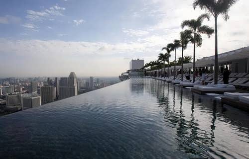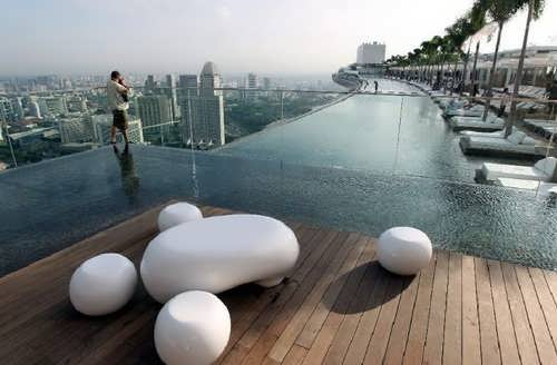 Se encuentra en el piso 55 del lujoso Hotel Marina Bay Sands, en Singapur. Es una de las más grandes del mundo al tener una longitud de 150 metros. Su diseño, inspirado en los arrozales balineses, pretende crear la impresionante sensación de vacío e infinito. Las imágenes hablan por si solas.