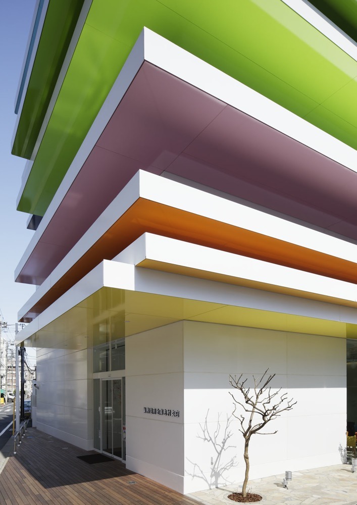 Este original y colorista edifico es el Sugamo Shinkin Bank, una cooperativa de crédito cuyo eslogan es “tenemos el placer de servir a los clientes felices” Ventanillas, cajeros automáticos, cabinas de consulta y un espacio con 14 butacas de distinto color reciben al cliente además de motivos decorativos que evocan el diente de león, tradicional planta europea, que soplamos para pedir un deseo. Está realizado por Emmanuelle Moureaux, Arquitectura y Diseño, se encuentra en Tokio, Japón. Cuenta con 762 m2 y se ha construido entre 2010 y 2011 . Las fotografías son de NACASA & Partners Inc.