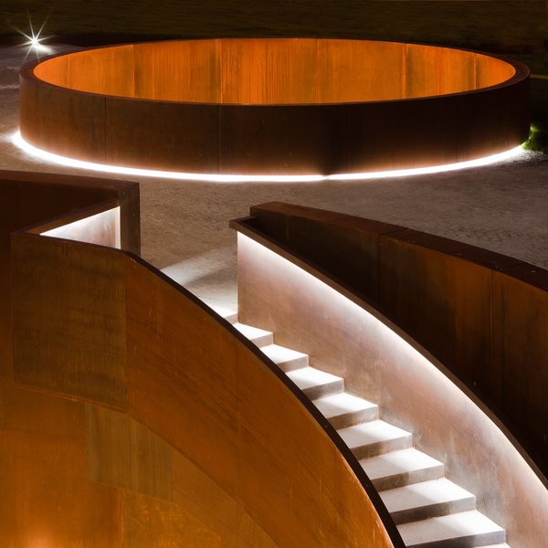 Se trata del museo Interactivo de la Historia en la ciudad de Lugo, en España. Un proyecto ganado mediante concurso en 2007 que se venía ejecutando desde 2008 hasta la actualidad. Sobre un solar apartado del centro histórico que albergaba antiguas estructuras de tipo industrial se ha creado este museo – parque. Arquitectura y paisaje se funden como podemos apreciar en las fotografías de Fernando Alda. El Museo propiamente y el centro de visitas se desarrolla en una sola planta que queda iluminada por grandes patios circulares que inundan de luz natural el interior. El área expositiva cuenta con un espacio neutro y flexible y otro definido por 3 cilindros, siendo el mayor espacio de 500 m2 con 10 de altura libre. Las torres que emergen del jardín han sido recubiertas con malla de hacer corten que además incorpora iluminación artificial para dar servicio al parque por la noche.
