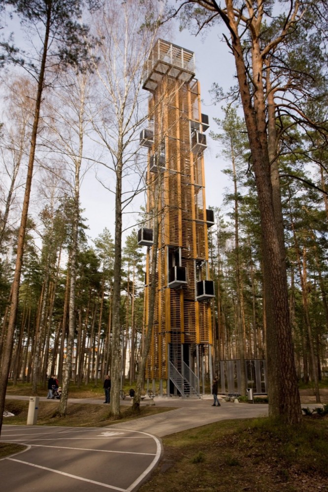 Se trata de una torre de observación instalada en el bosque en Jurmala,