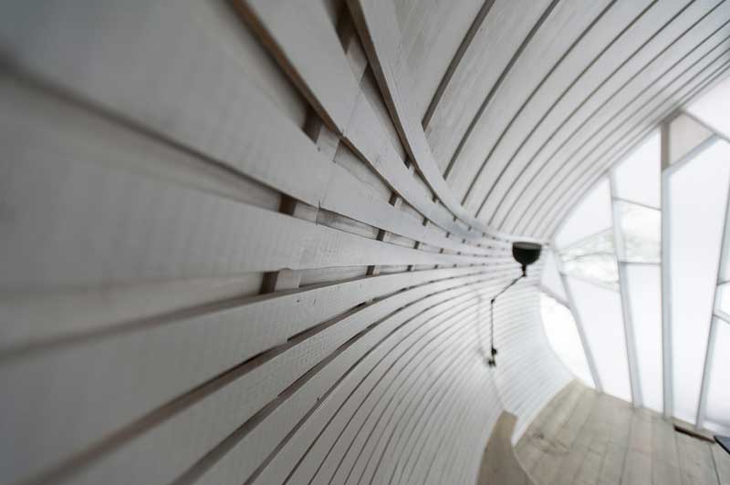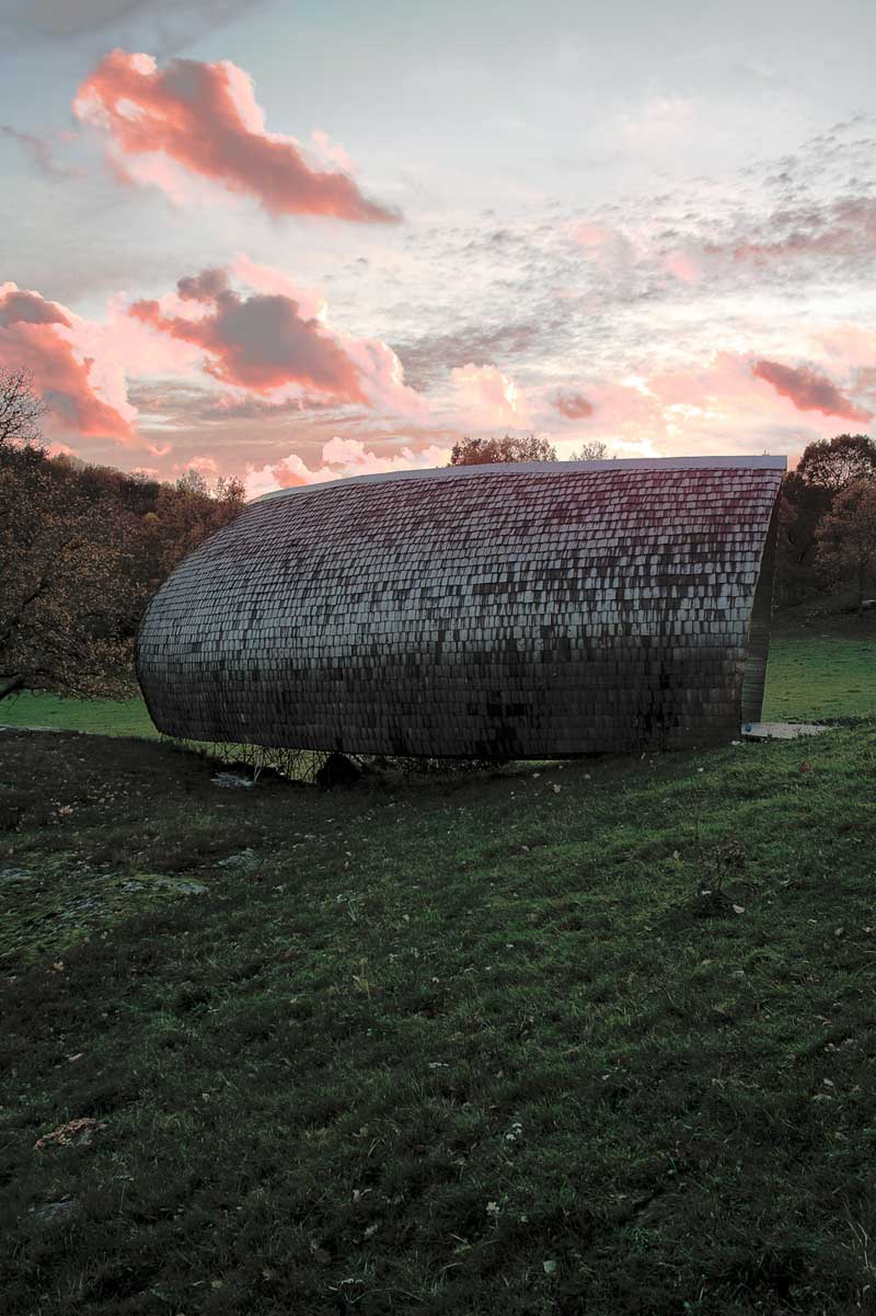 parece emerger de la tierra, es totalmente autoportante, con lo que en cualquier