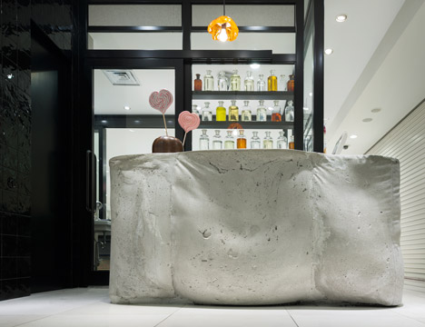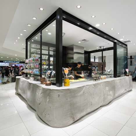 hormigón para crear un gran mostrador con forma de caramelo artesanal.
