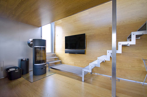 loft industrial, se ha realizado una escalera metálica con vidrio para acceder