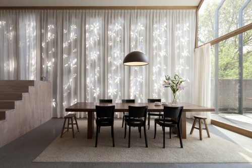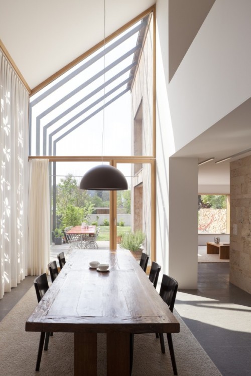 cerámica, madera, mármol y grandes cortinones en el gran ventanal principal