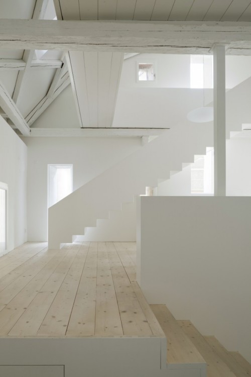 comodidad. Un suelo de madera de arce en lama ancha contrasta con el blanco