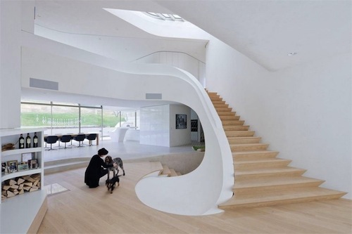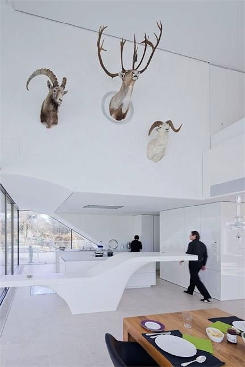 ha realizado en roble, mientras que el blanco estucado domina todas las paredes