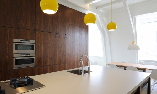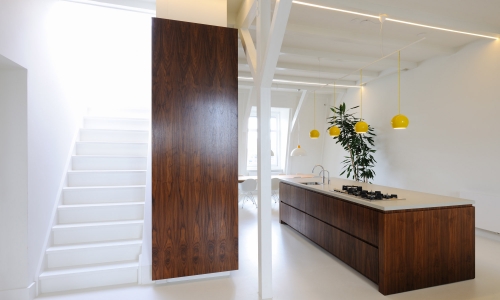 fuerza y contraste de la madera de nogal con la que se ha realizado la cocina,