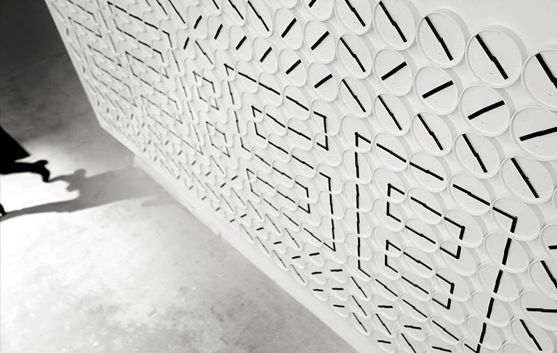 consiste en la colocación de 300 relojes en un panel de 3,50 metros de largo