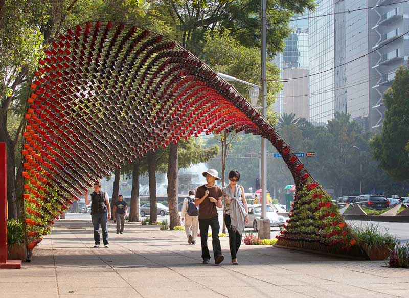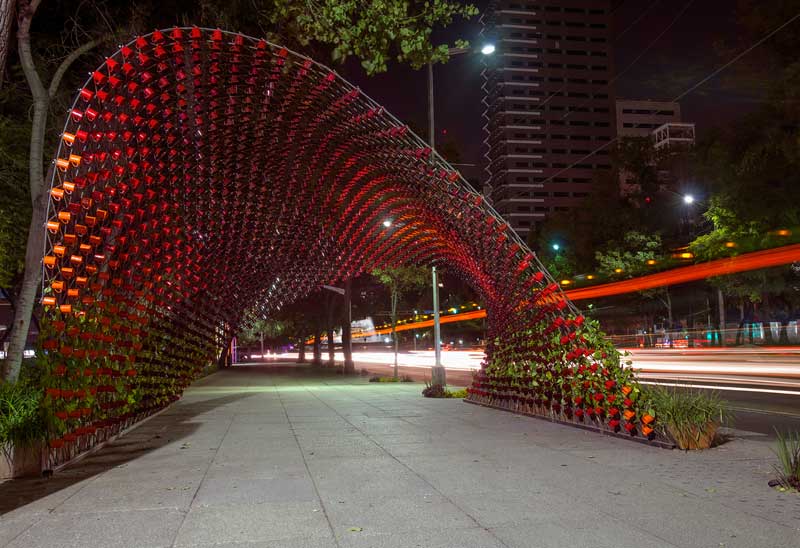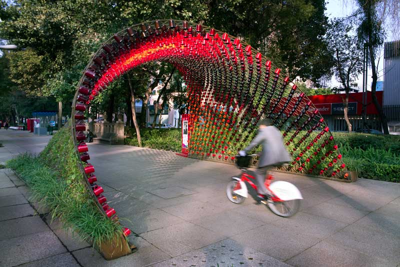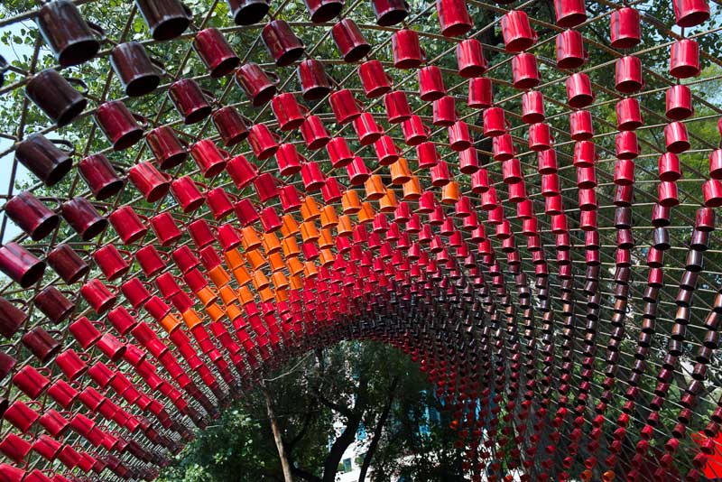 Un arco peatonal con 1500 tazas de café
